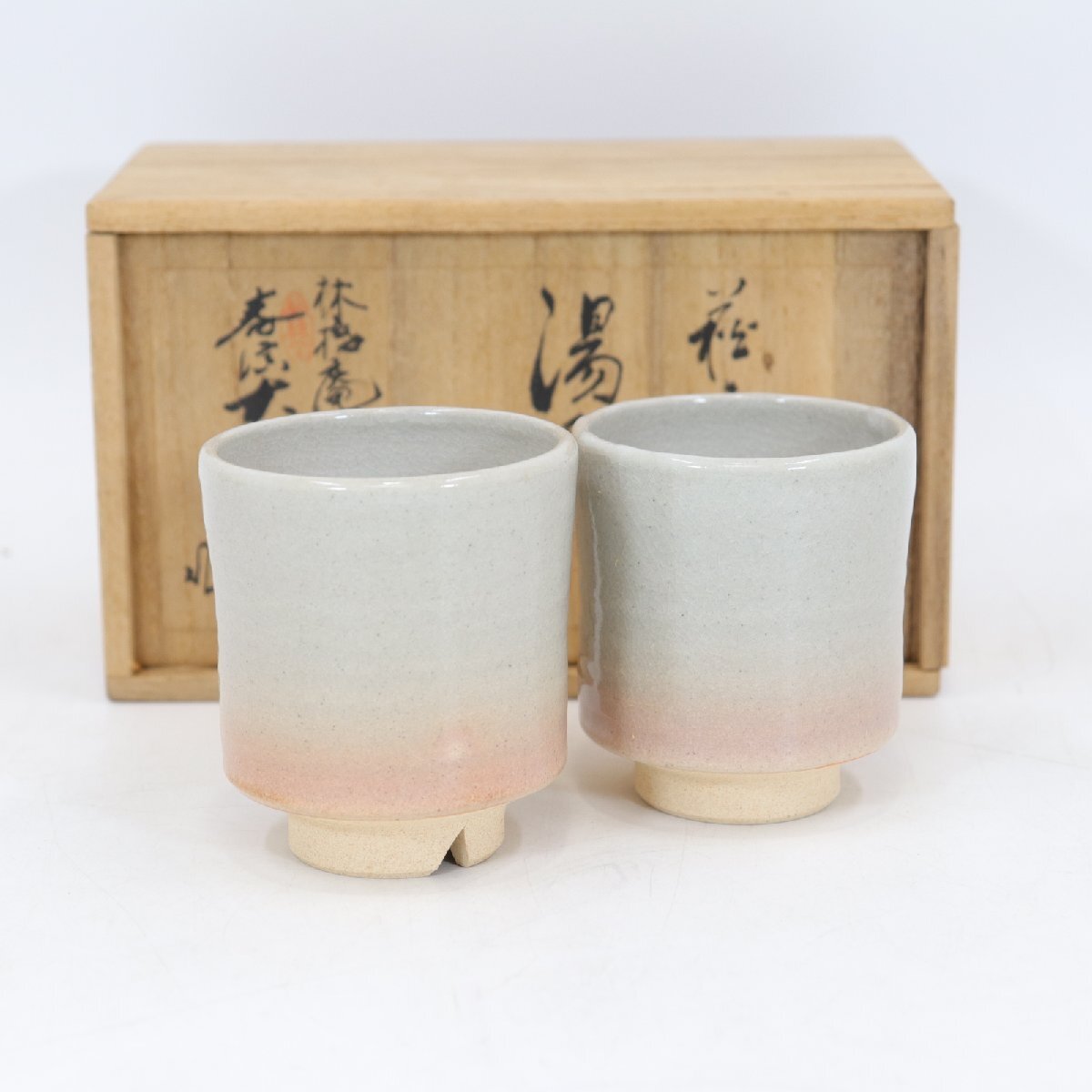 > ER-60 萩焼 林椿庵 十一代 春信 大和松緑 湯呑み 2個 茶器 和食器 伝統工芸品 陶磁器 骨董品