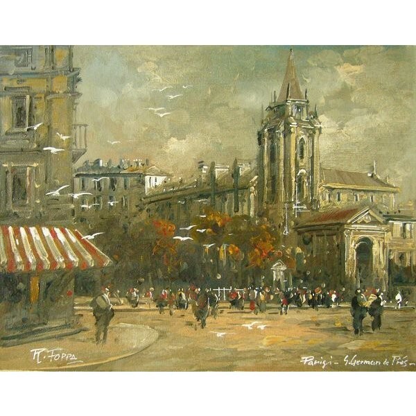 - ヨーロッパ絵画 肉筆油絵 (額縁付きで納品対応可) サイズF6号 フォッパ作 「PaniGi」