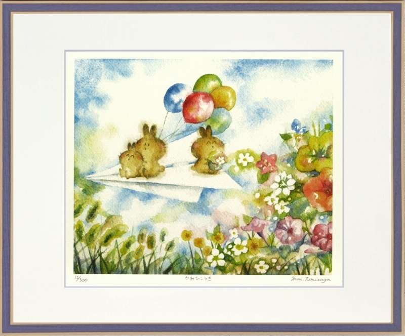 - ジークレー版画 額装絵画 とみながまい 「かみひこうき」 四ッ切