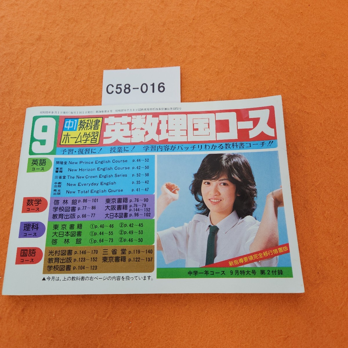 - C58-016 中ー教科書ホーム学習 英数理国コース(9月号) 中学一年コース9月特大号第2付録 昭和55年9/1発行