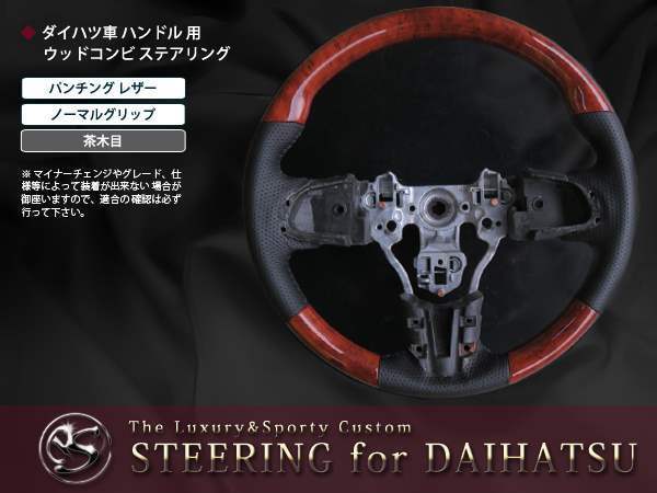 - タント LA600/LA610S 純正交換 茶木目×レザー ステアリング