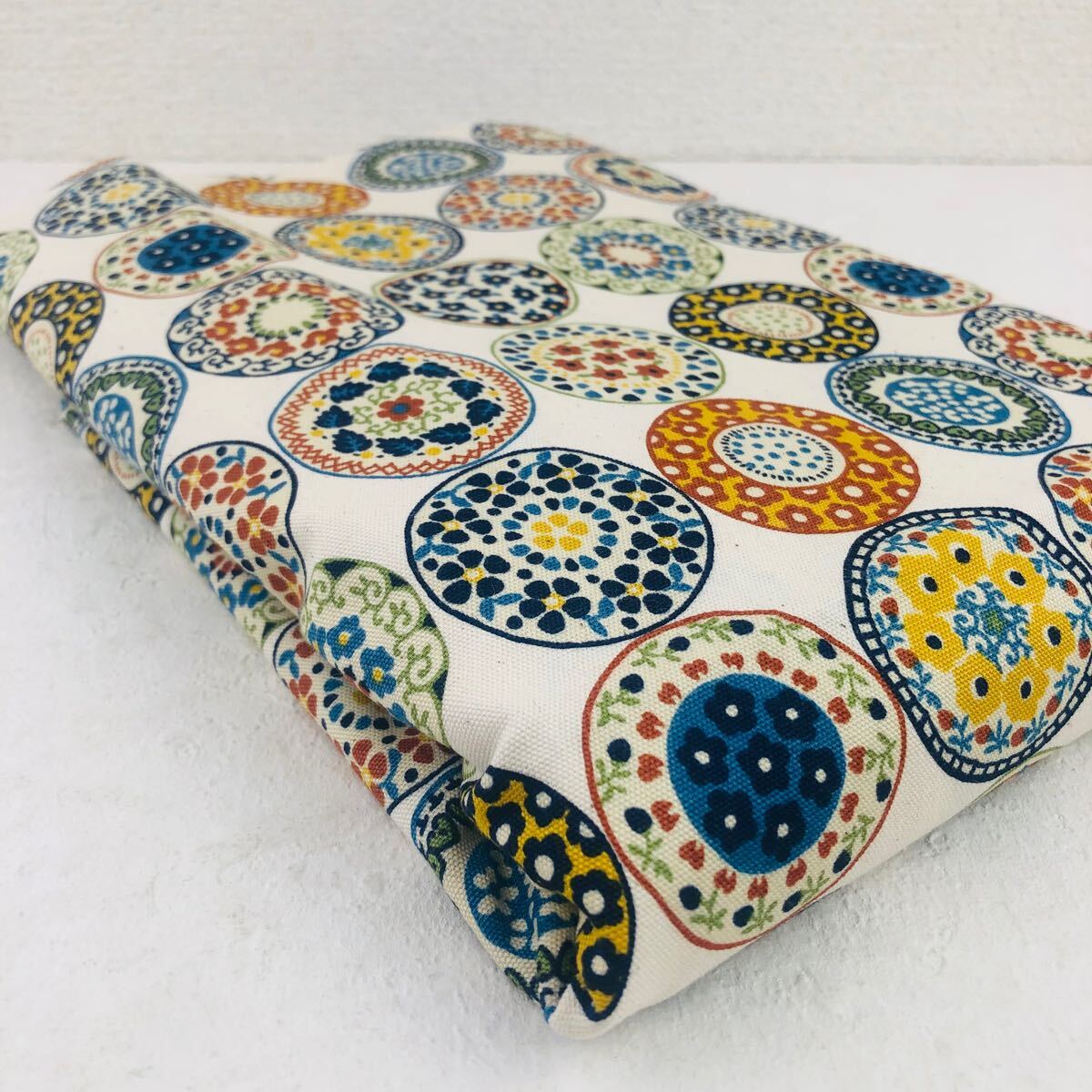 > 1m ポーリッシュポタリー オックス ポーランドのお皿柄 綿 110×100 はぎれ 生地 布 綿布 北欧