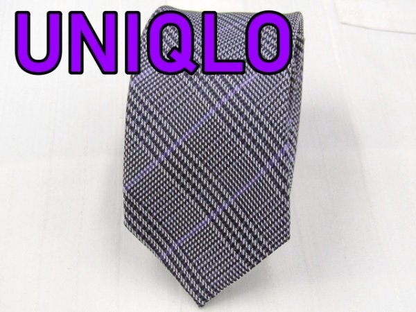 - 【ナロー 細身ネクタイ】 【ユニクロ】 E 483 ユニクロ UNIQLO ネクタイ 黒系 紫系 チェック ジャガード ナロータイ