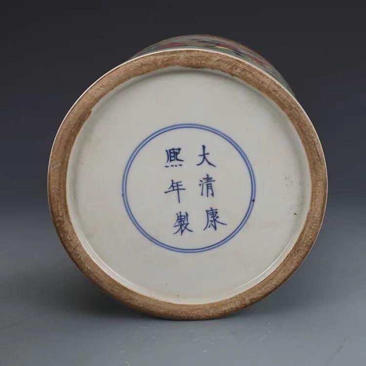 - 清時代 康熙年製款 古陶磁器 粉彩 人物紋 観音瓶 花器 磁瓶 賞瓶 文案置物 擺件 時代物 古董品 骨董 旧家蔵出し 唐物 中国古玩 古美術品