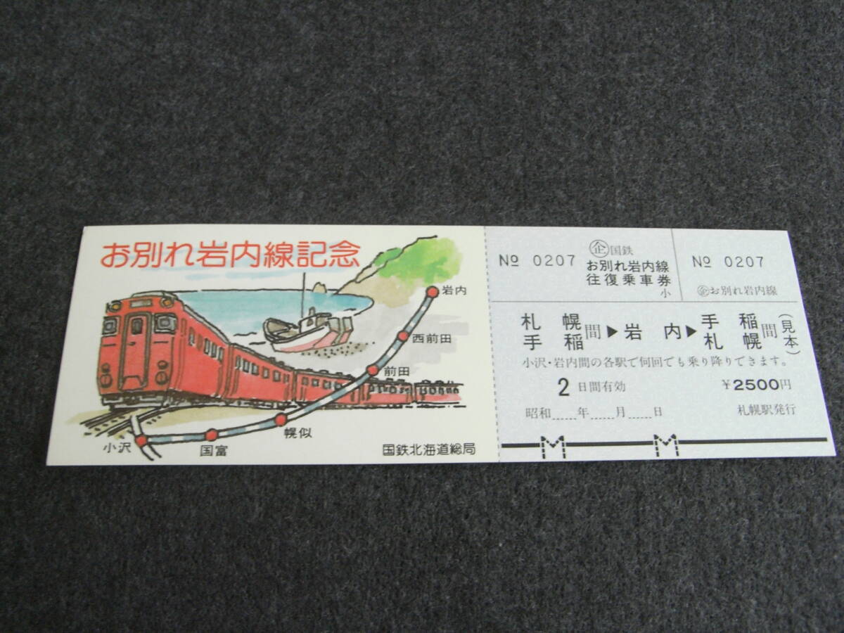 - お別れ岩内線記念 往復乗車券 札幌 手稲間→岩内→札幌 手稲間 札幌駅発行 国鉄北海道総局 1985年