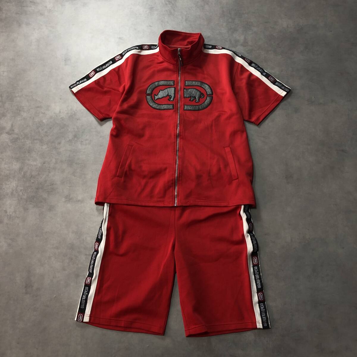 - HQ112◇ECKO UNLTD : セットアップ ジャージ◇L◇赤 半袖ジャージ ショートパンツ エコーアンリミテッド