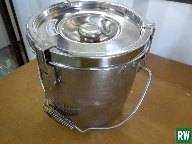 > 【1個】 食缶 21cm 約7L ステンレス パッキン付き 給食 運搬 ハンドル付き 穴あり ジャンク品 在庫処分品 [2]