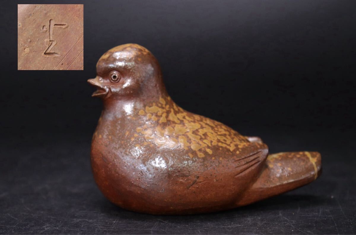 > 島村光 作 備前 鳩 水滴 鳩笛 / 備前焼 細工物 置物 鳥 書道具 文房具 煎茶道具 手造 手捻り .B312