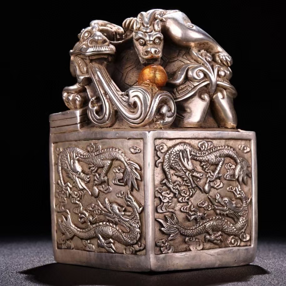 - 清代 秘蔵 古銅金銀竜亀玉璽印 印章 印鑒 古印材 印鑑の方 文房具 銅製 銅琉金 唐物 收蔵品 時代物 古美術 古置物 希少珍品 供養品 6.3