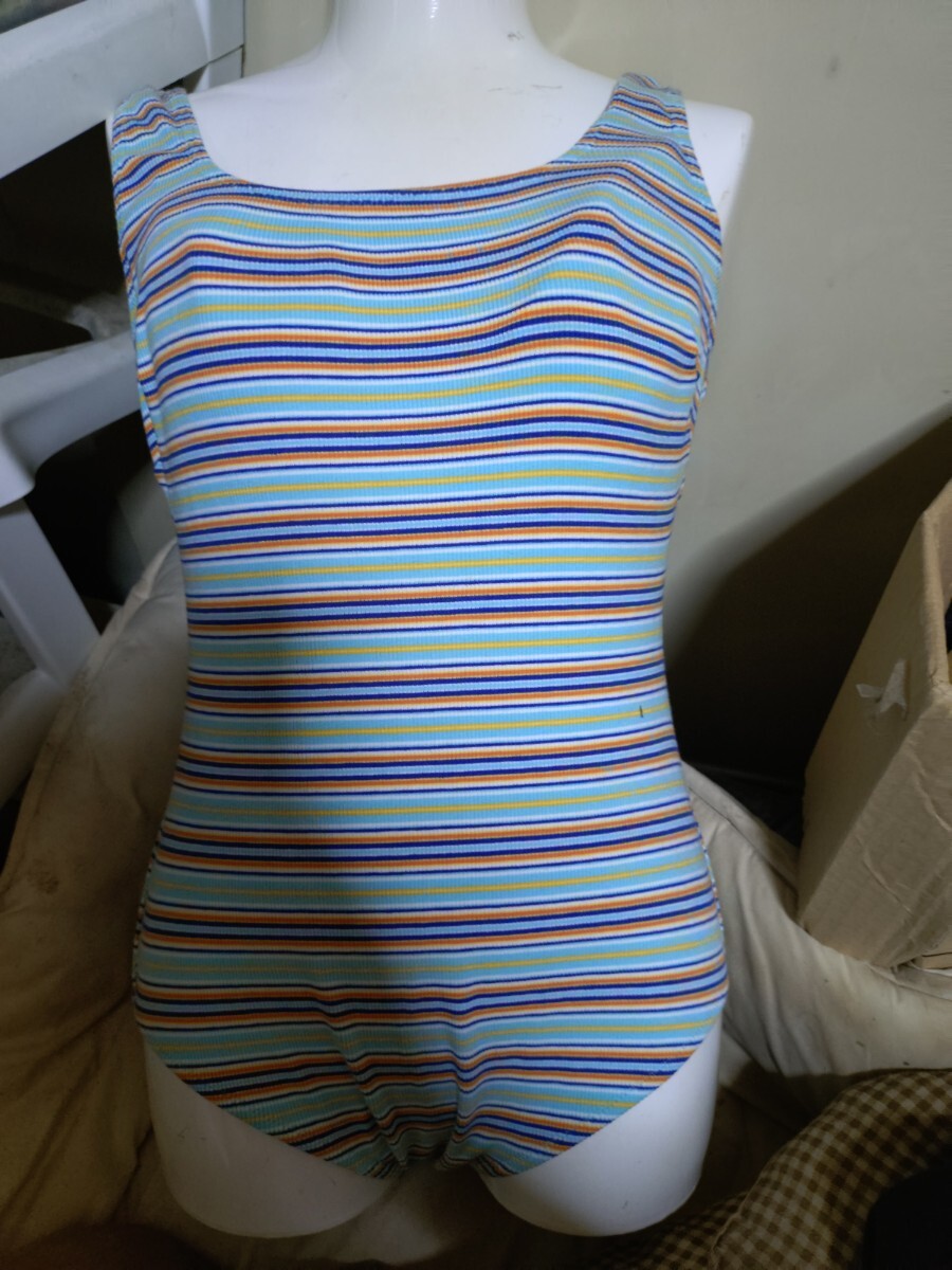 - M4217◆セレブなブルー系ストライプ柄ワンピース水着◆11L