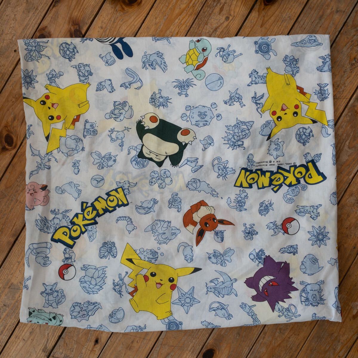 - USAヴィンテージ ベッドシーツ ポケモン リメイク生地 POKEMON ピカチュウ カビゴン 総柄 素材 ボックスシーツ アメリカ仕入 B2805