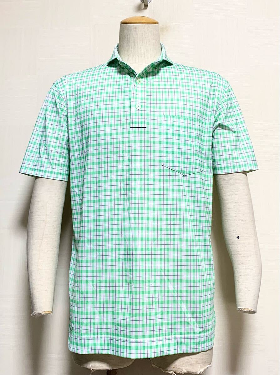 - 新品同様:FOOTJOY(フットジョイ).半袖 ポロシャツ M(チェック柄/縦横ストレッチ/速乾/接触冷感/肩48幅52丈71/GOLF/callaway type)