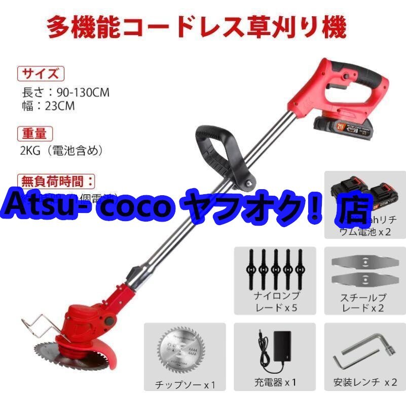 - 草刈り機 充電式 芝刈機 電動草刈り機 コードレス 草刈機 刈払機 2個バッテリー搭載 80分稼動 伸縮式 除草機 マキタ 21v バッテリー対応