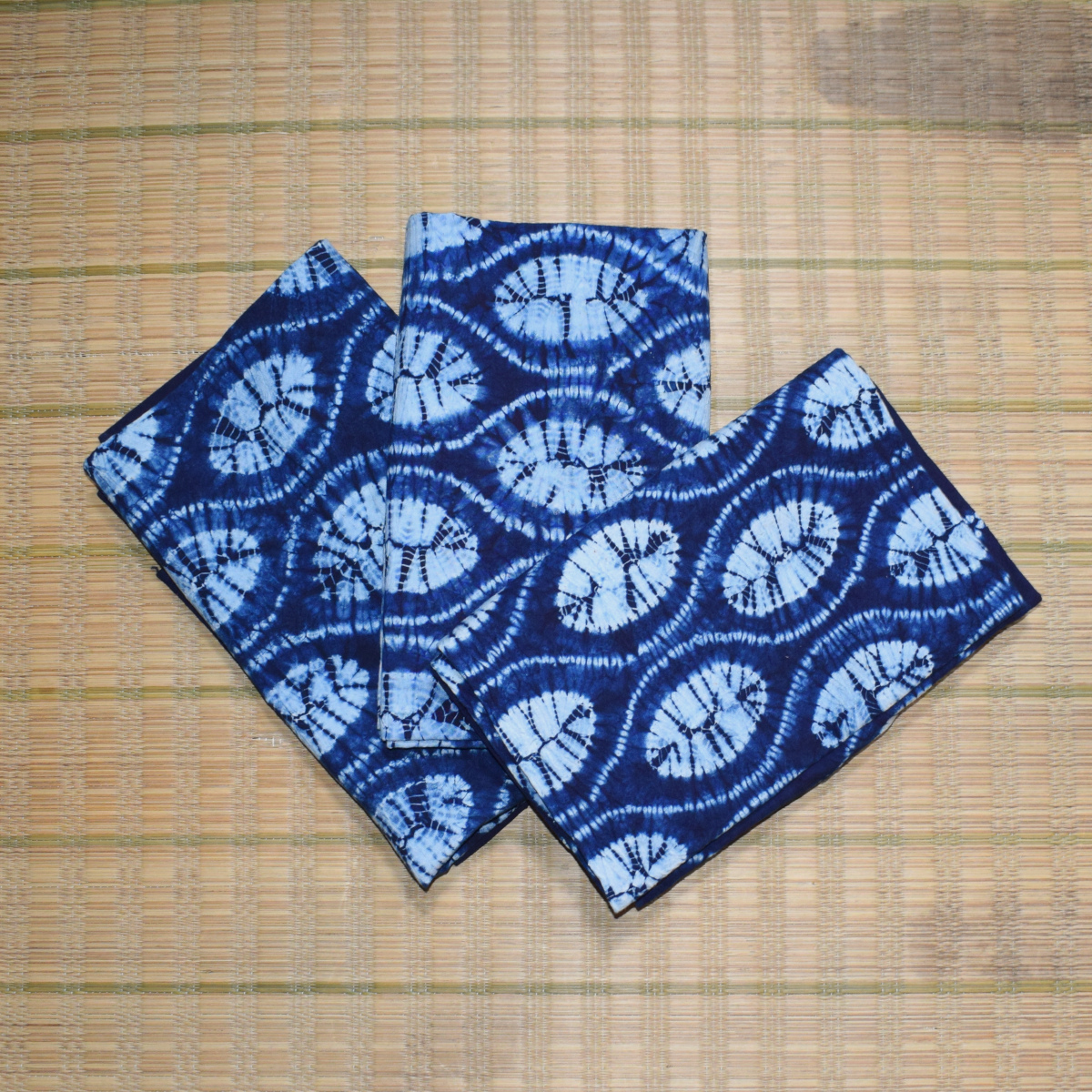 - 藍染 同柄三枚セット テーブルクロス タペストリー マルチカバー 横幅約106cm 縦幅約105cm 綿 【kk14-3】