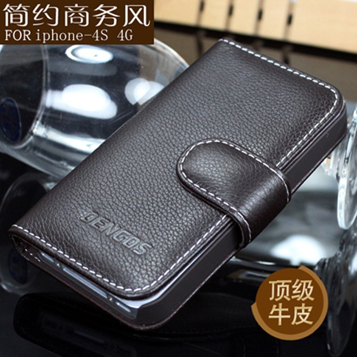 - iPhone4 4S 高級本革 手帳型 スマホケースA 濃い茶 AB12