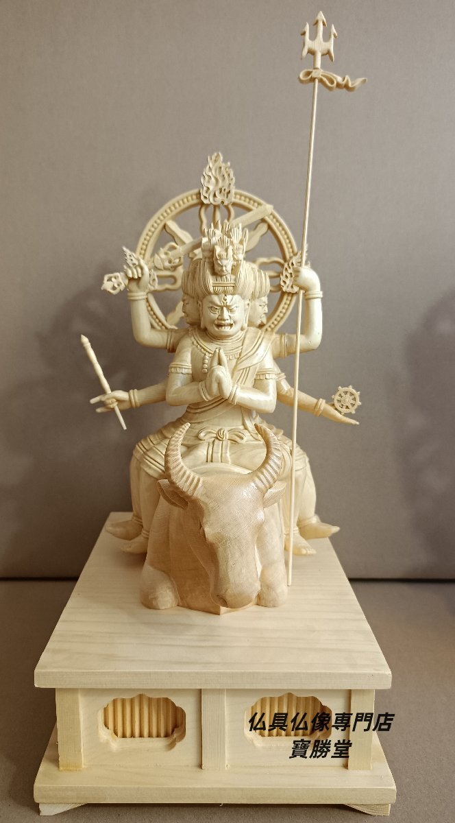 - 総檜材 木彫仏像 仏教美術 精密細工 仏師で仕上げ品 大威徳明王像 高さ31cm【送料無料】【仏具仏像専門店寶勝堂】