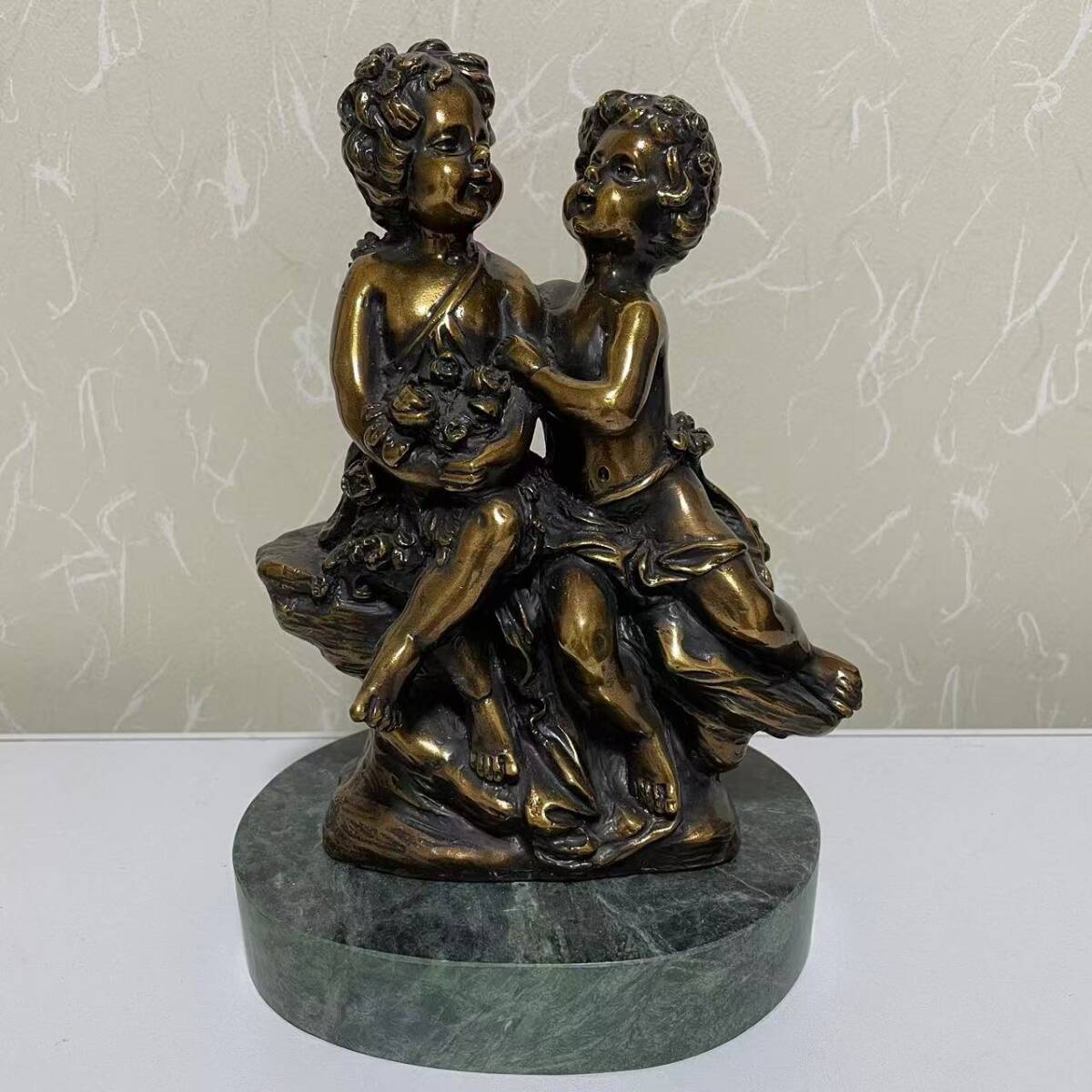 - Auguste Moreau オーギュスト モロー作 「 ふたりの少年 花摘み」 サイン入り アンティーク ブロンズ子供像 - 大理石台座 置物