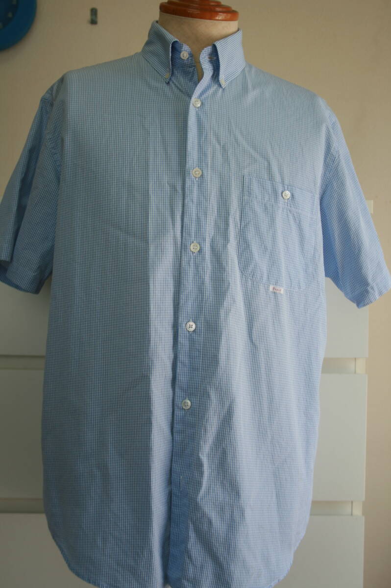 - PAPAS 綿100% パパス 半袖BDシャツ ブルーギンガムチェック size 48 レギュラーフィット M USED