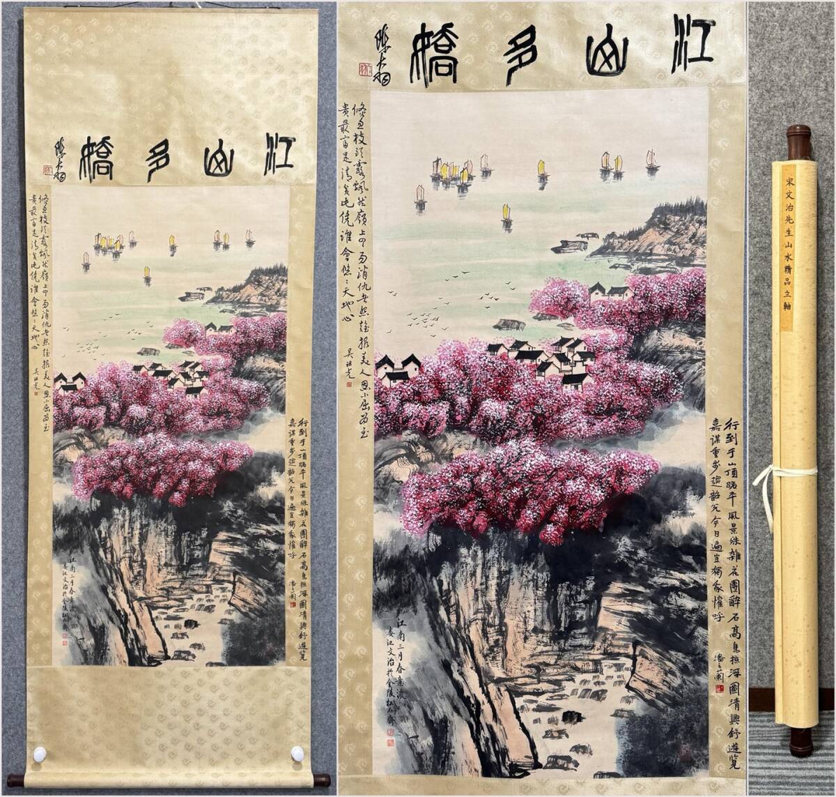 > 古美術 掛け軸 中国・近現代 「宋文治書」 紙本 【江山多嬌図】 立軸 書道 巻き物 肉筆保証 唐物 古画 画心137.5x67.5cm LT-250653