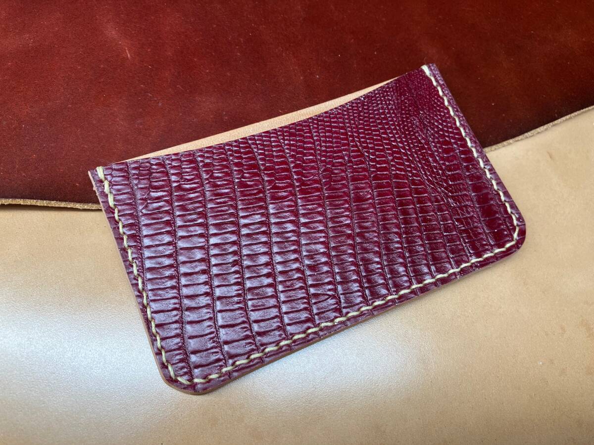 - ■no.1009★カードケース/名刺入れ★ レーデルオガワ社製コードバン★ リザード型押しガーネット