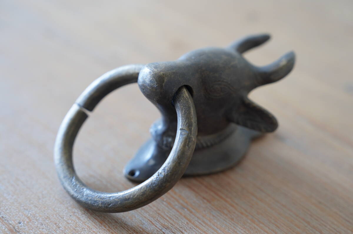 - 古道具 タオルホルダー ホルダー 真鍮製 真鍮 ハンドメイド 牛 動物 インテリア ディスプレイ