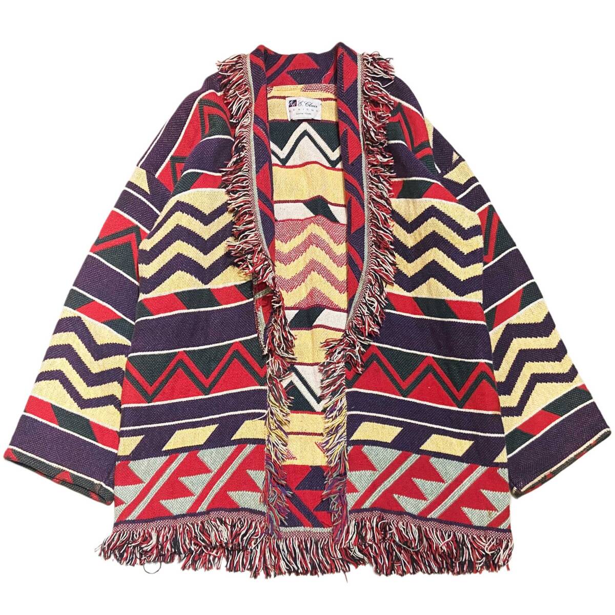 - 希少【ビンテージ 80s E.Clair DESIGNS フリンジ コットンラグ ネイティブパターン ガウンジャケット】アメリカ USA テキサス 70s ラルフ