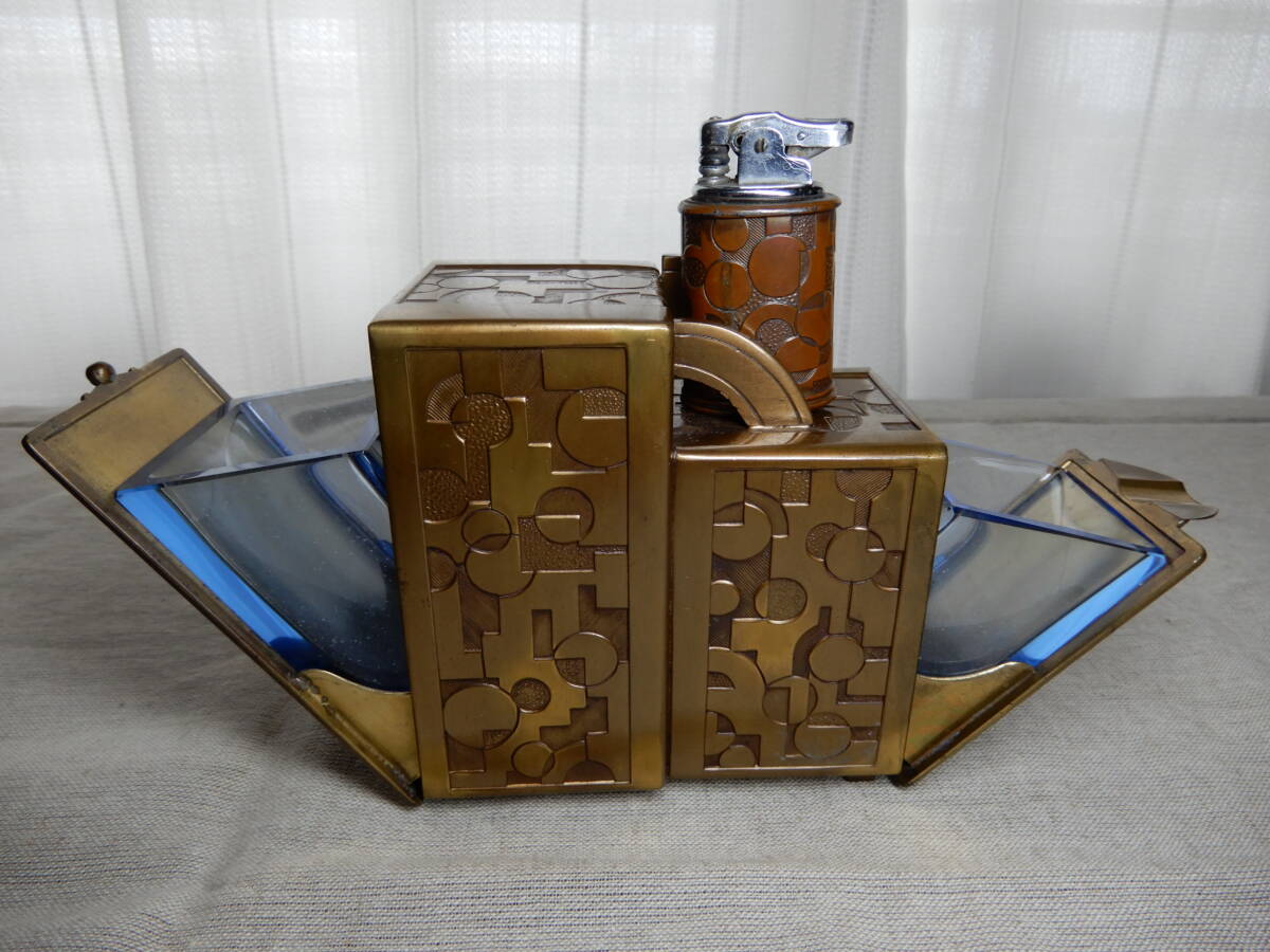 - 昭和11年アールデコデザインの極み「卓上喫煙具セット」専用箱入り 11×11×6.5㎝程 尼崎市制二十周年記念品 AC1331