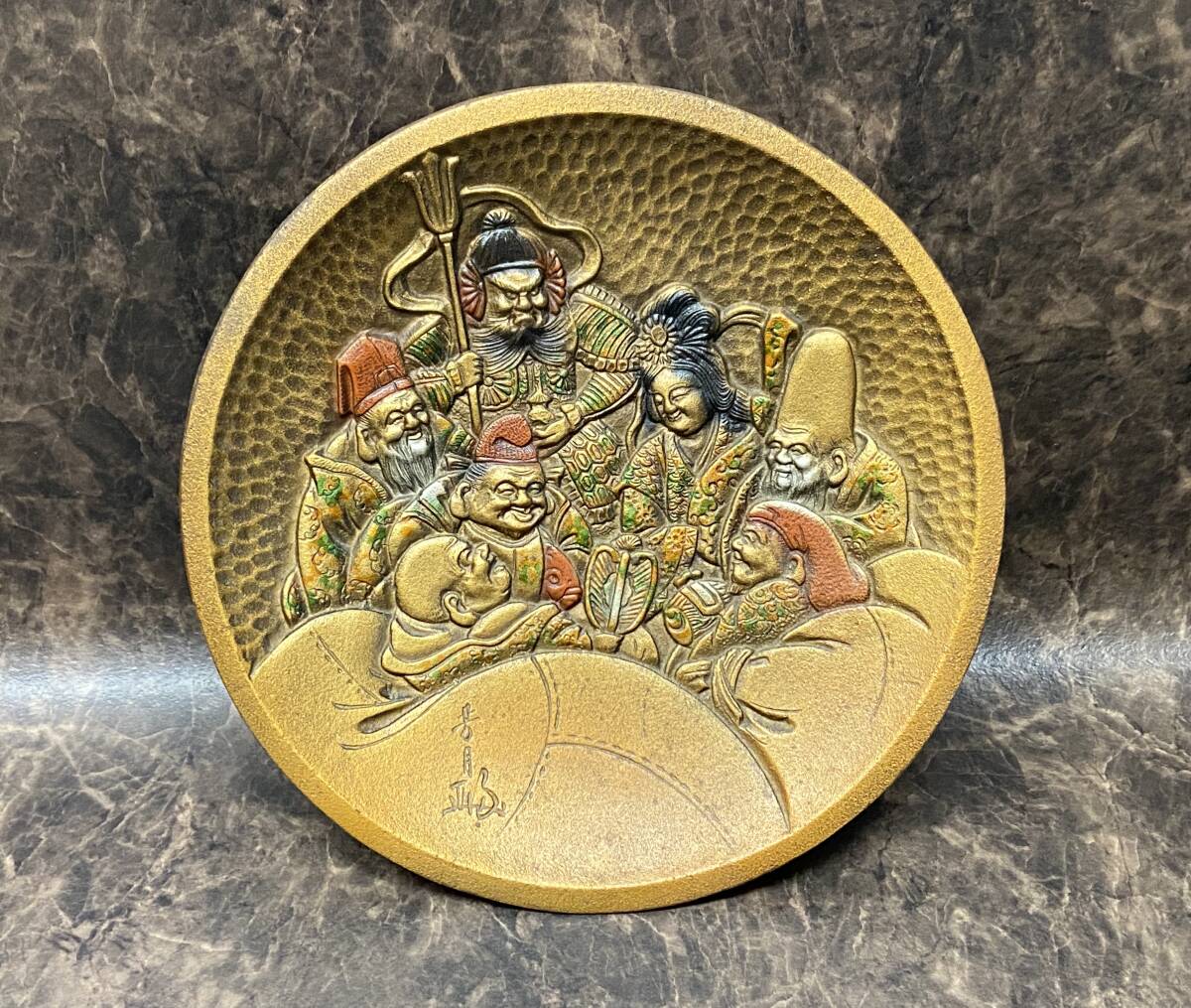- 金属工芸 七福神 飾皿 在銘 芳月 美術鋳物