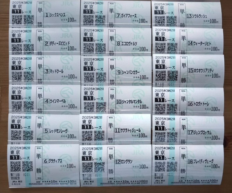 - 【2025.6.8 安田記念】出走全頭 現地単勝馬券&レーシングプログラム☆優勝ジャンタルマンタル☆JRA 匿名配送