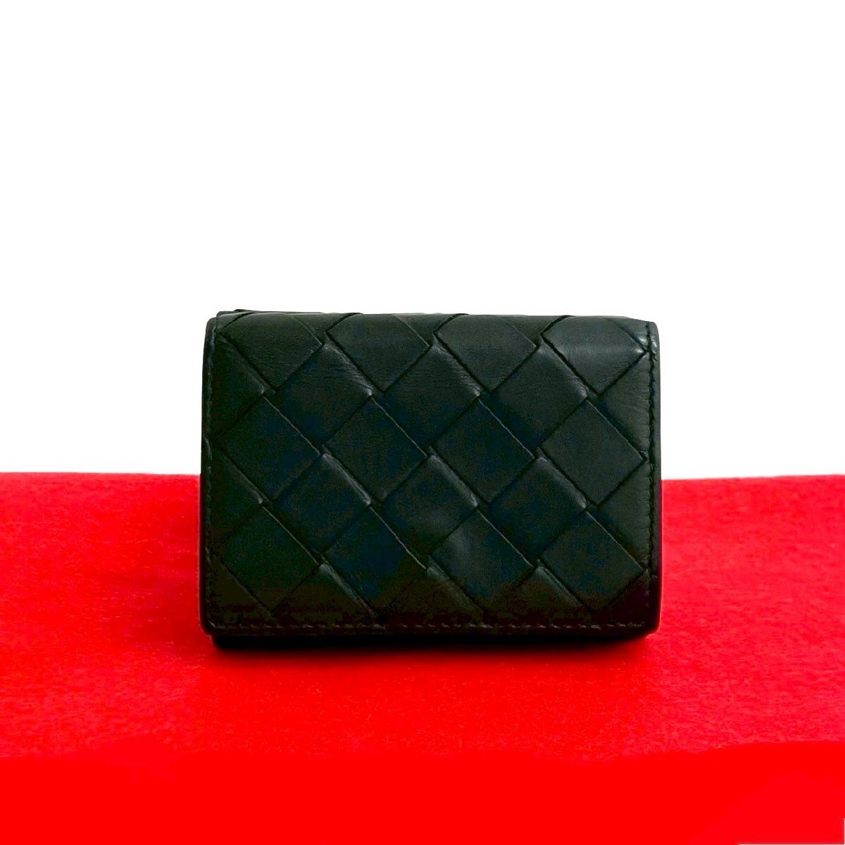 > 極 美品 BOTTEGA VENETA ボッテガヴェネタ イントレチャート レザー 本革 三つ折り 財布 ミニ ウォレット ブラック ブルー 00154