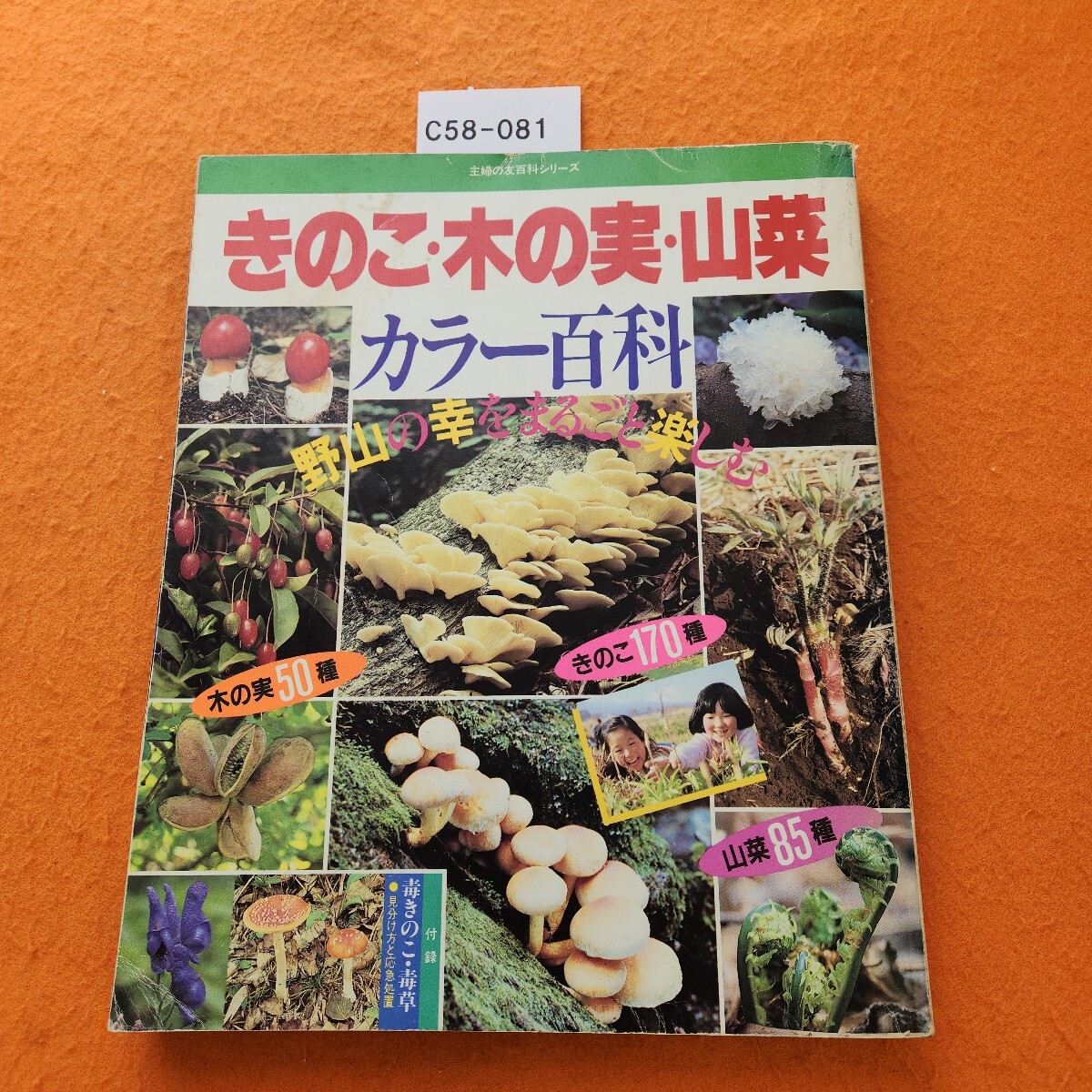 - C58-081 野山の幸をまるごと楽しむ きのこ・木の実・山菜 カラー百科 付録なし。表紙劣化あり。