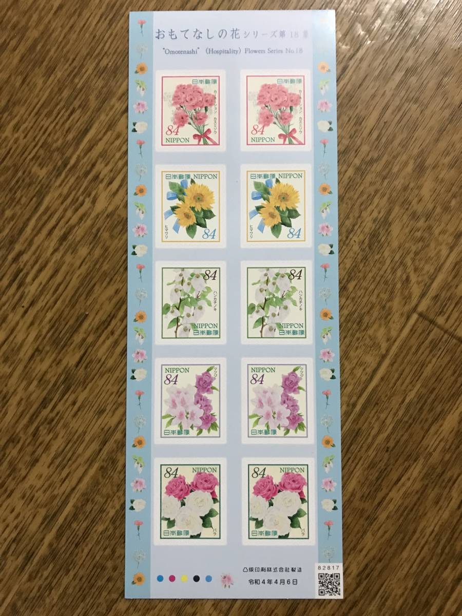 - 【即決販売(R4,4発行版)】 おもてなしの花シリーズ 第18集・シール切手シート (84円×10枚)