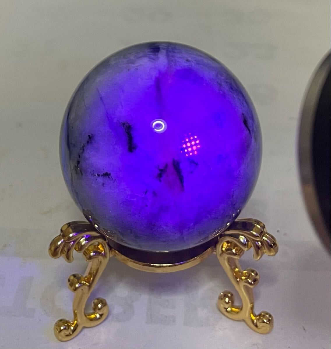 > ブルーハックマナイト 005 天然石スフィア 置物インテリア パワーストーン ラッキー 風水晶 幸運 丸玉 魔除 お守 ピンク パープル