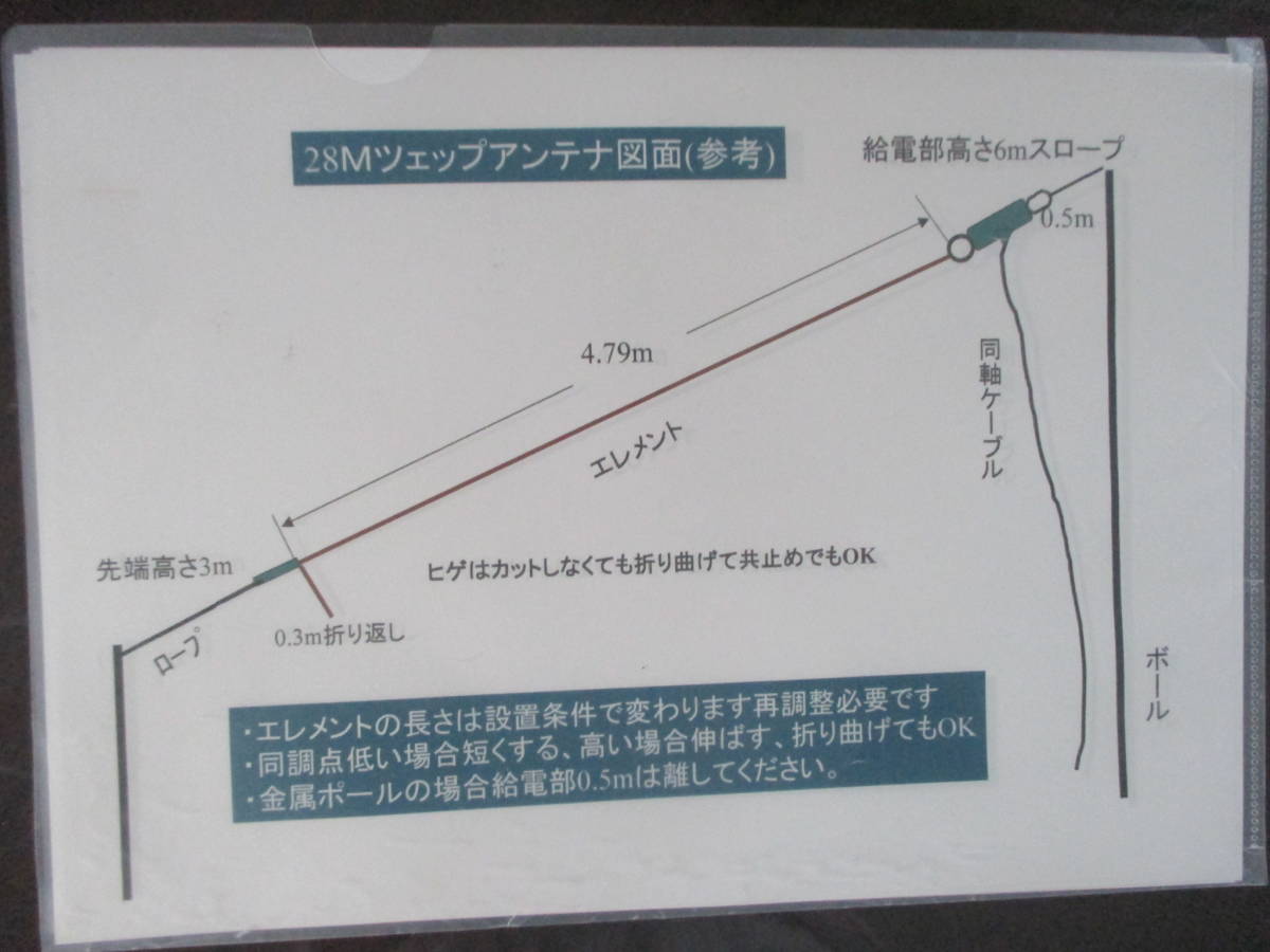 - 28M帯 1/2波長 ツェップ アンテナ 【エレメント調整で27M帯~29M帯迄使用可能】自作/未使用