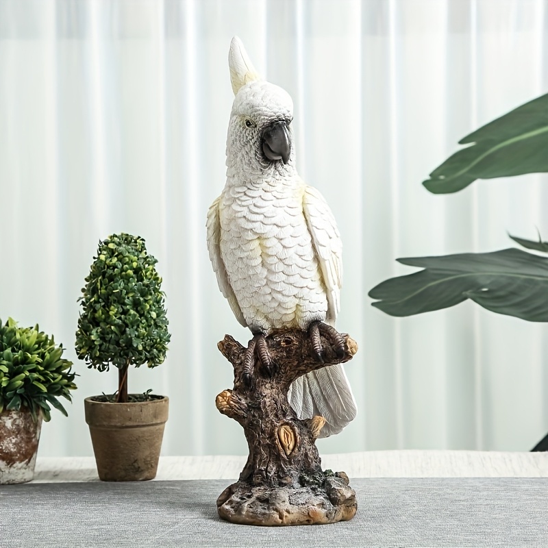 > ミニチュア 白いオウム リアル 置物 34cm 鳥 台座付き 樹脂像 インテリア 動物 レジン おしゃれ アニマル かわいい フィギュア t6856