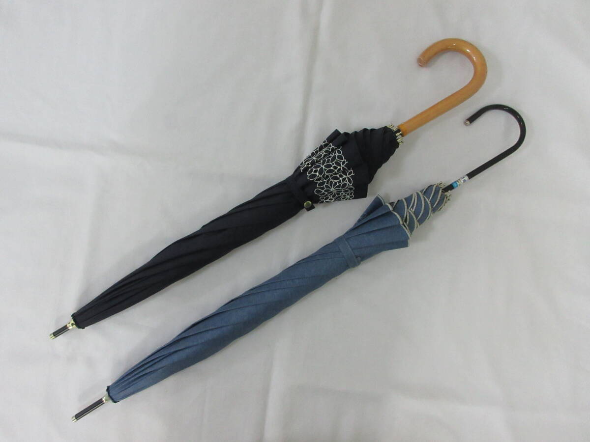 - ( せ-A4-8153 )日傘 手開き式 長傘 2本 まとめ売り セット ネイビー 紺色 デニム風 花 中古