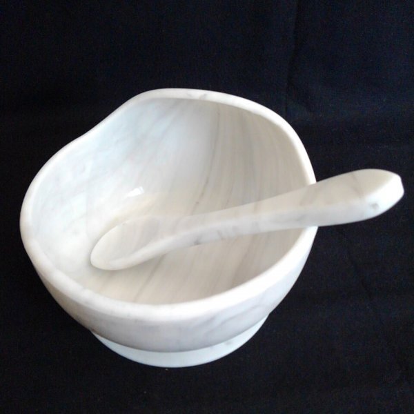 - ★在庫処分SALE★ シリコンボウル(吸盤付き) スプーン付き マーブルグレー べビー食器 37 00043