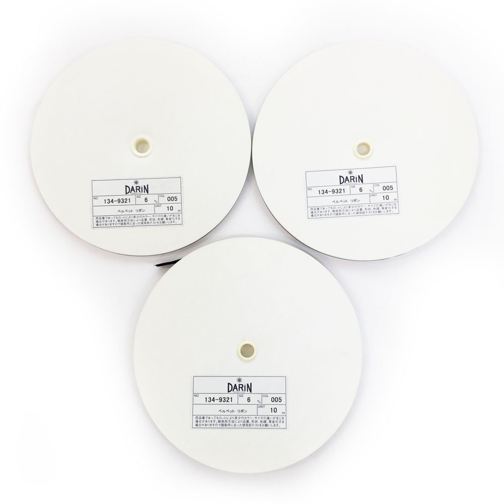 - ◆DARIN 品番134-9321 片面ベルベットリボン 3巻セット 幅6mm ブラック グログランリボン ベロアテープ ハンドメイド 手芸 6CC/92977