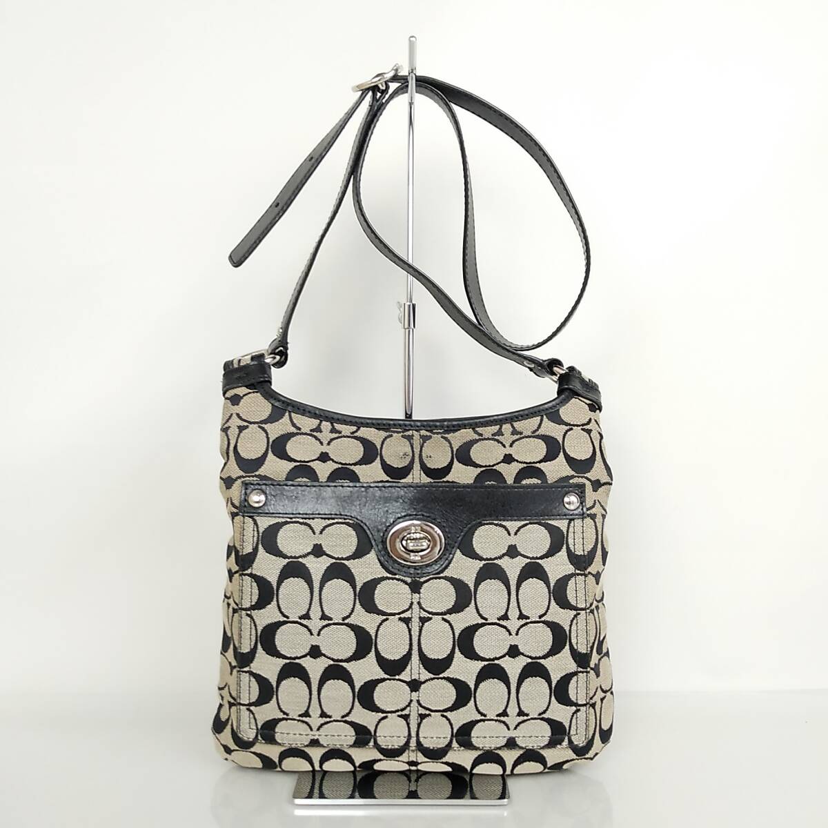 - 74B69|コーチ シグネチャー ショルダーバッグ ブラック ターンロック
