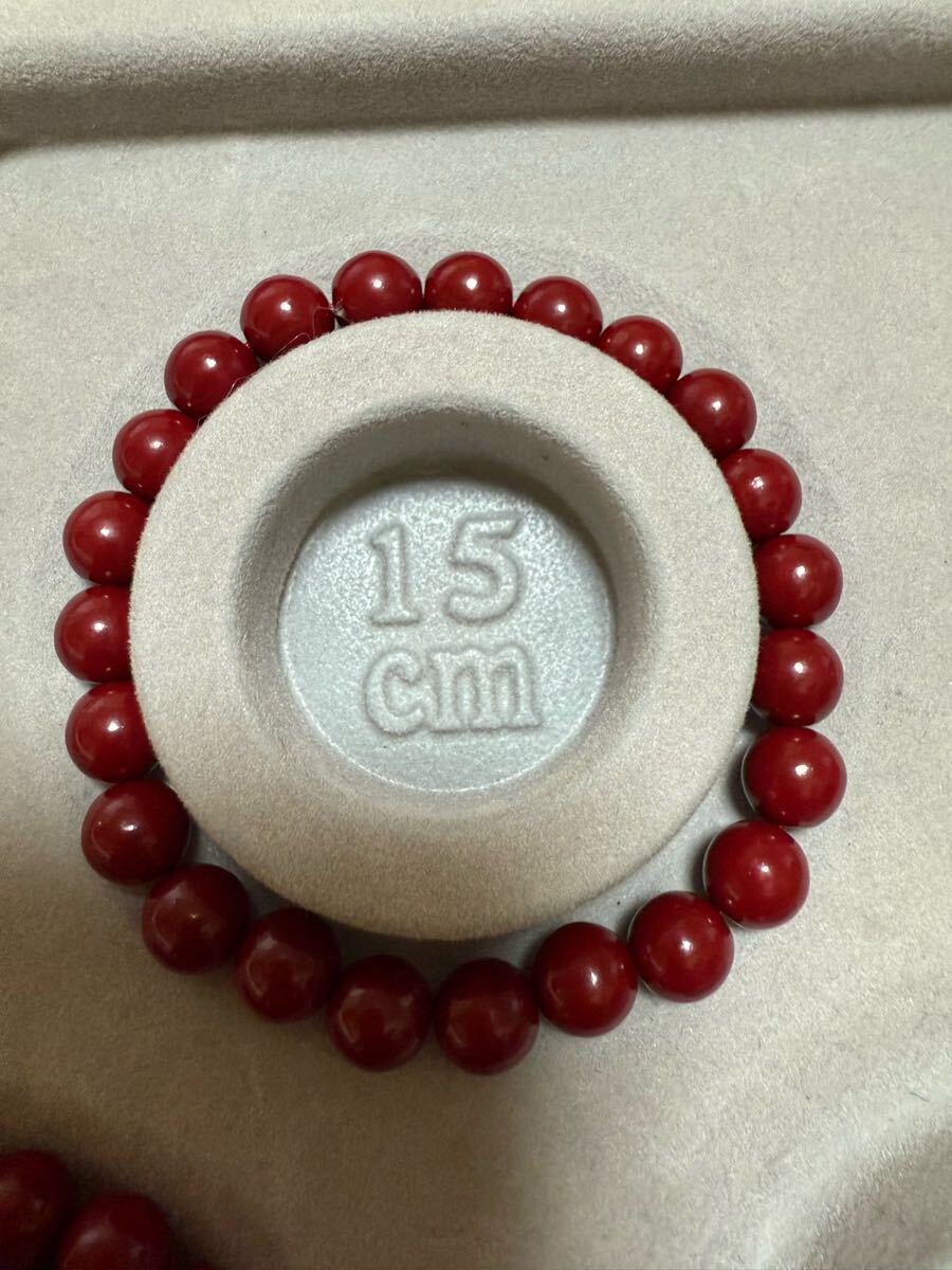 - 人気のシナバーのブレスレット8㎜玉内径15.5㎝ 最終お値引き中