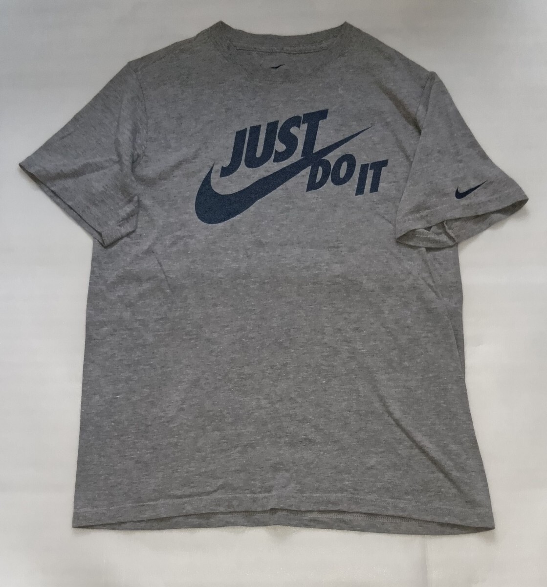 - ☆NIKE TEE 女性サイズLウィメンズ レディース半袖TシャツGLAYグレイ紺色ネイビーJUST DO IT.スポーツ洗濯済ティー ナイキBETTER WORLD.COM
