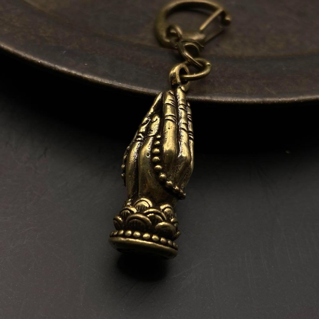 > 183 真鍮 キーホルダー 合掌 手 祈り ビンテージ 風水 金運 開運 レトロ アンティーク 真鍮製 チャーム アクセサリー パーツ ハンドメイド