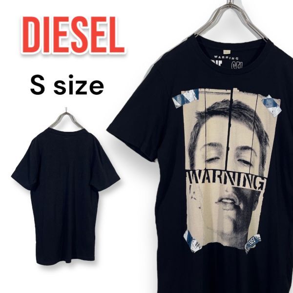> ディーゼル DIESEL 半袖Tシャツ WARNING ワーニング 薄手 黒 ブラック Sサイズ メンズ