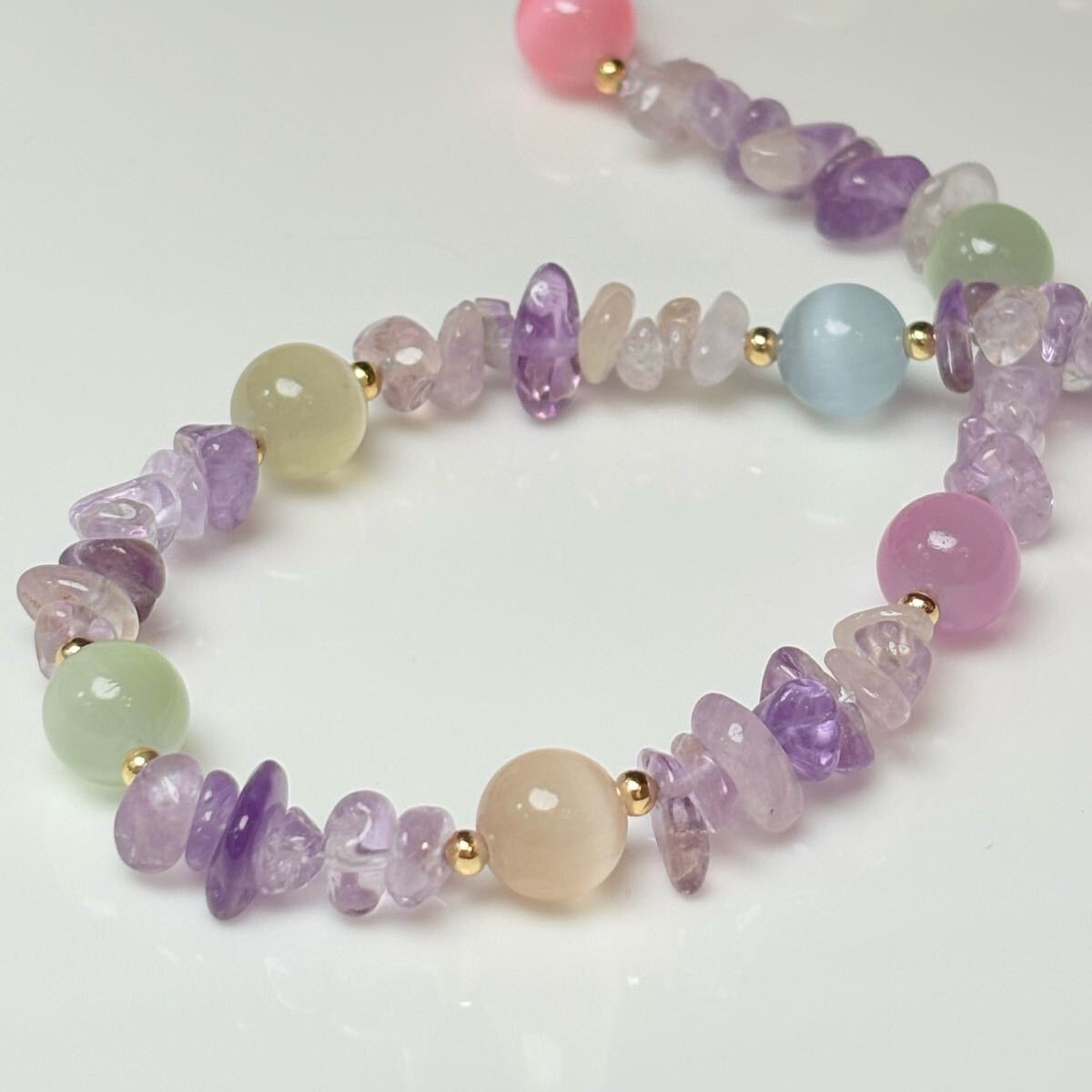 - 天然石ネックレス カラーストーン アメジスト キャットアイ