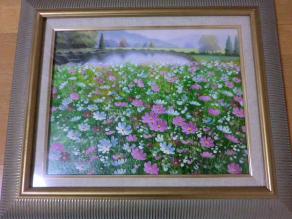 - 真作 ★ 油彩 風景画 コスモス 6号 大野純一 ★