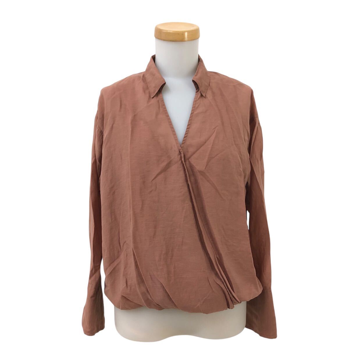 > m629-32 2021年製 Mila Owenミラオーウェン 長袖 カシュクール バルーン ブラウス シャツ トップス ピンク系 ブラウン系 レディース 0