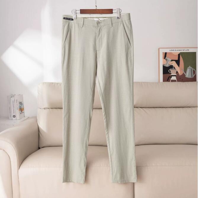 - 大人気2XL カーキ色 新品 イージー スラックス シルク混 通気性 薄手 春夏 シンプルライフ イージーケア サマー パンツ メンズ テーパード