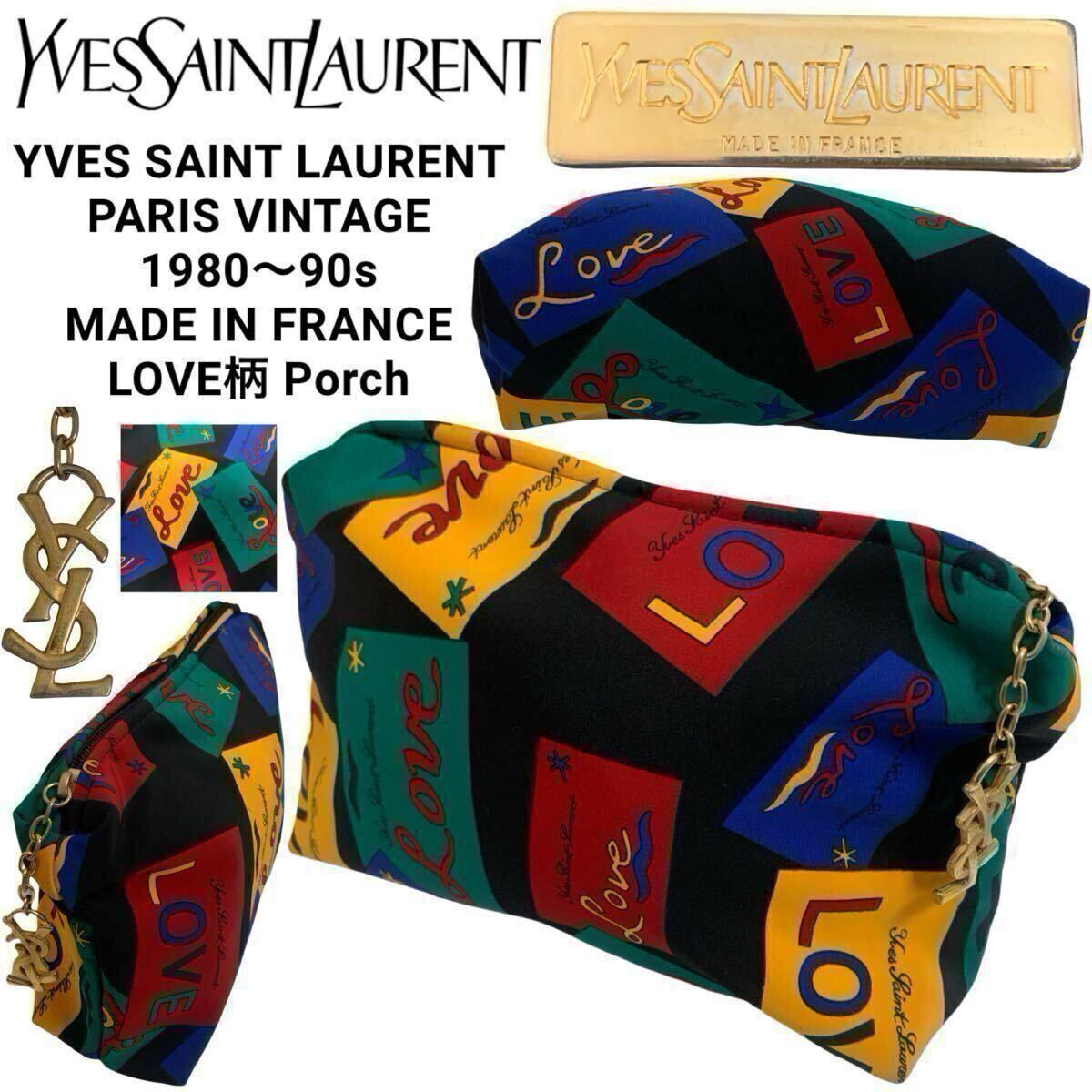 > YVES SAINT LAURENT PARIS VINTAGE イブ サンローランパリ ヴィンテージ 1980~90s MADE IN FRANCE LOVE柄 ポーチ クラッチ BAG アーカイブ