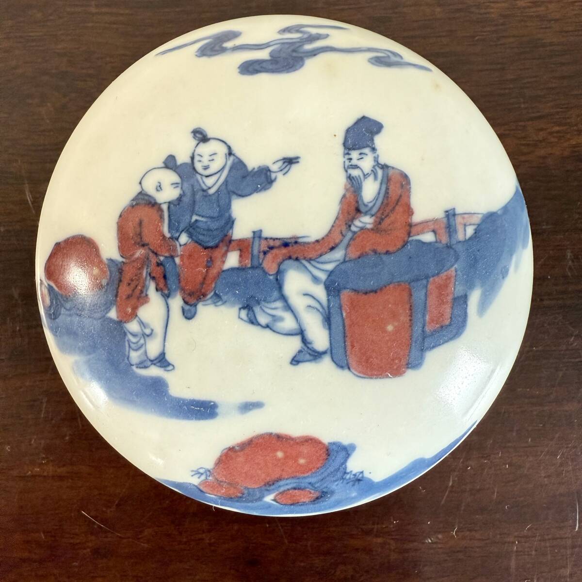 - 時代 中国美術 清朝 大清康熙年製銘 辰砂 染付 合子 印合 香合 / 書道具 煎茶道具 唐物 古美術 骨董 古玩 古陶磁器 青花