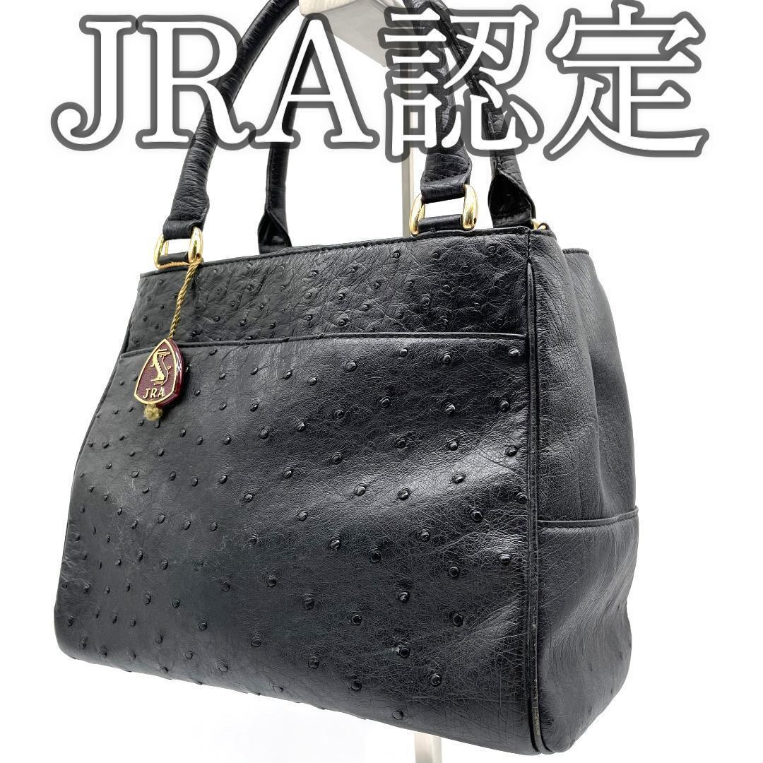 - 【JRA認定】オーストリッチ ハンドバッグ 黒 ブラック クラインカルー